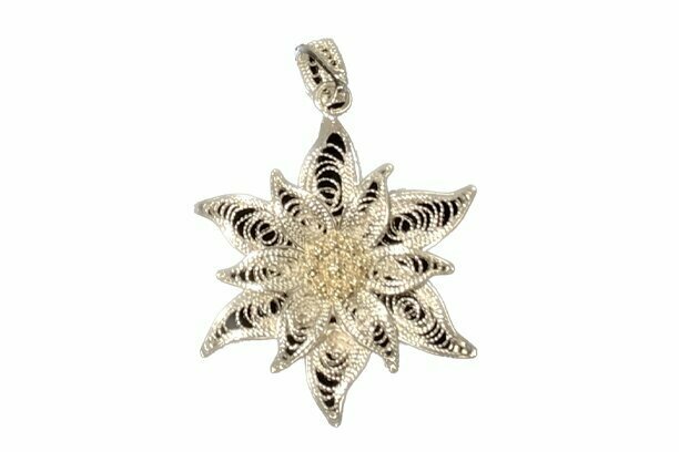 Das EDELWEISS, kostbar seltene Blume der rauhen Felswände der Alpen. Eine sehr alte Handwerkskunst - und noch immer eine lebende Traditon. Das original Tiroler Filigran-Edelweiss - gemacht aus reinem Sterlingsilber und ausschließlich handgemacht. Nach altem Brauch holten es junge Männer als Mut- und damit Liebesprobe aus dem Fels, um es ihren verehrten Mädchen zu schenken. Es dient als Glücksbringer aus den herrlichen Alpen.